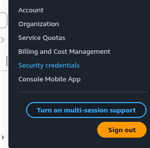 1. Click on your name on the top right of the screen and then click Security Credentials from the dropdown